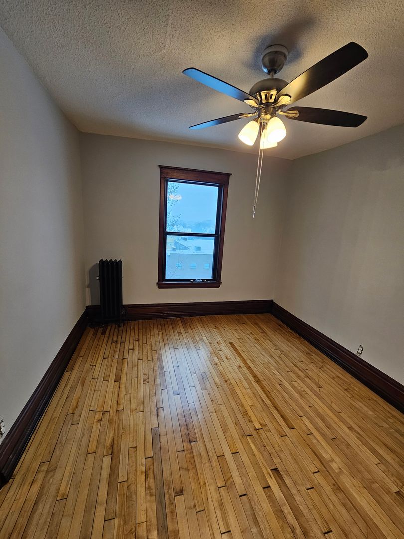 Beautiful spacious apartment with refinished wood flooring, floor to ceiling subway tile in bathroom and kitchen, new windows, brand new appliances, including dishwasher and a shared back deck space.
